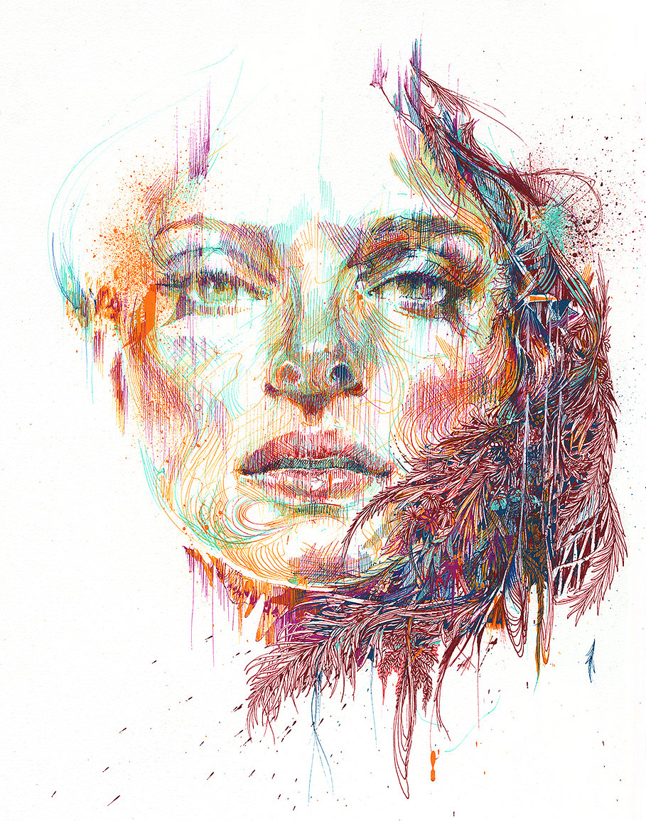 The Lilford Gallery has recently shown a Solo Exhibition of Liverpudlian artist Carne Griffiths. Griffiths works with a mixture of inks, to create intricately latticed drawings, and then develops and pushed these drawings further by reworking them with liquids such as tea, vodka and brandy, which add more depth and freedom to his works.
