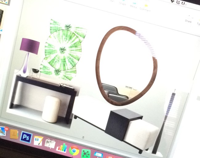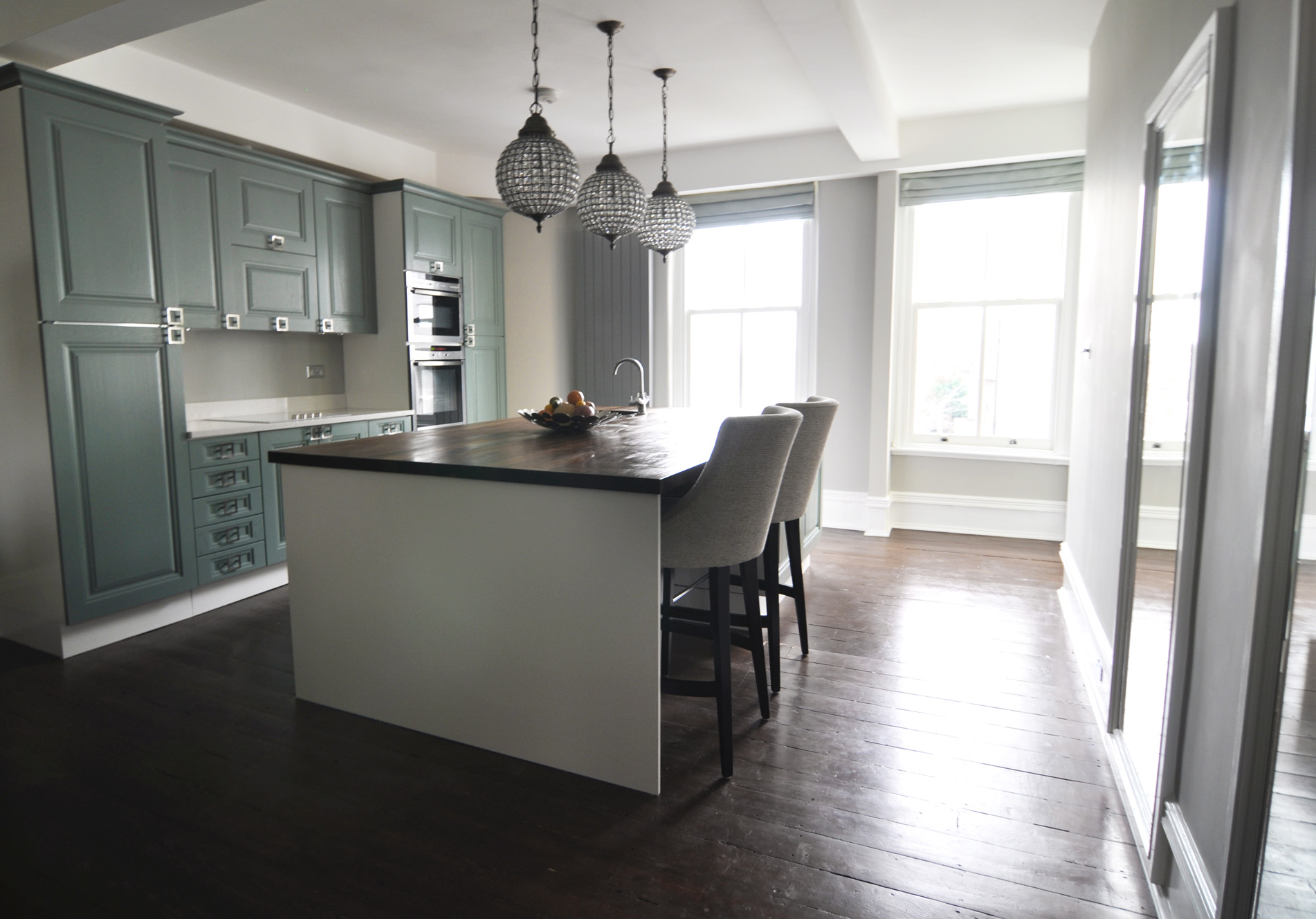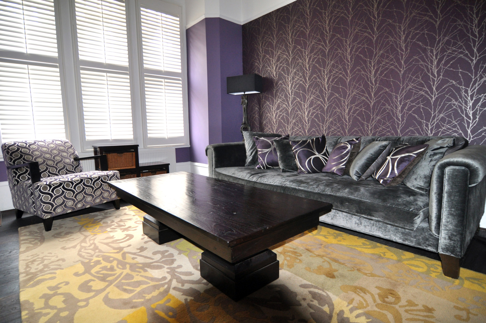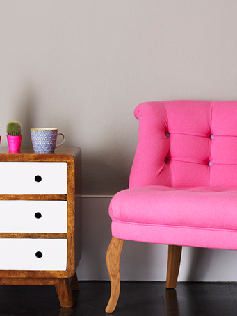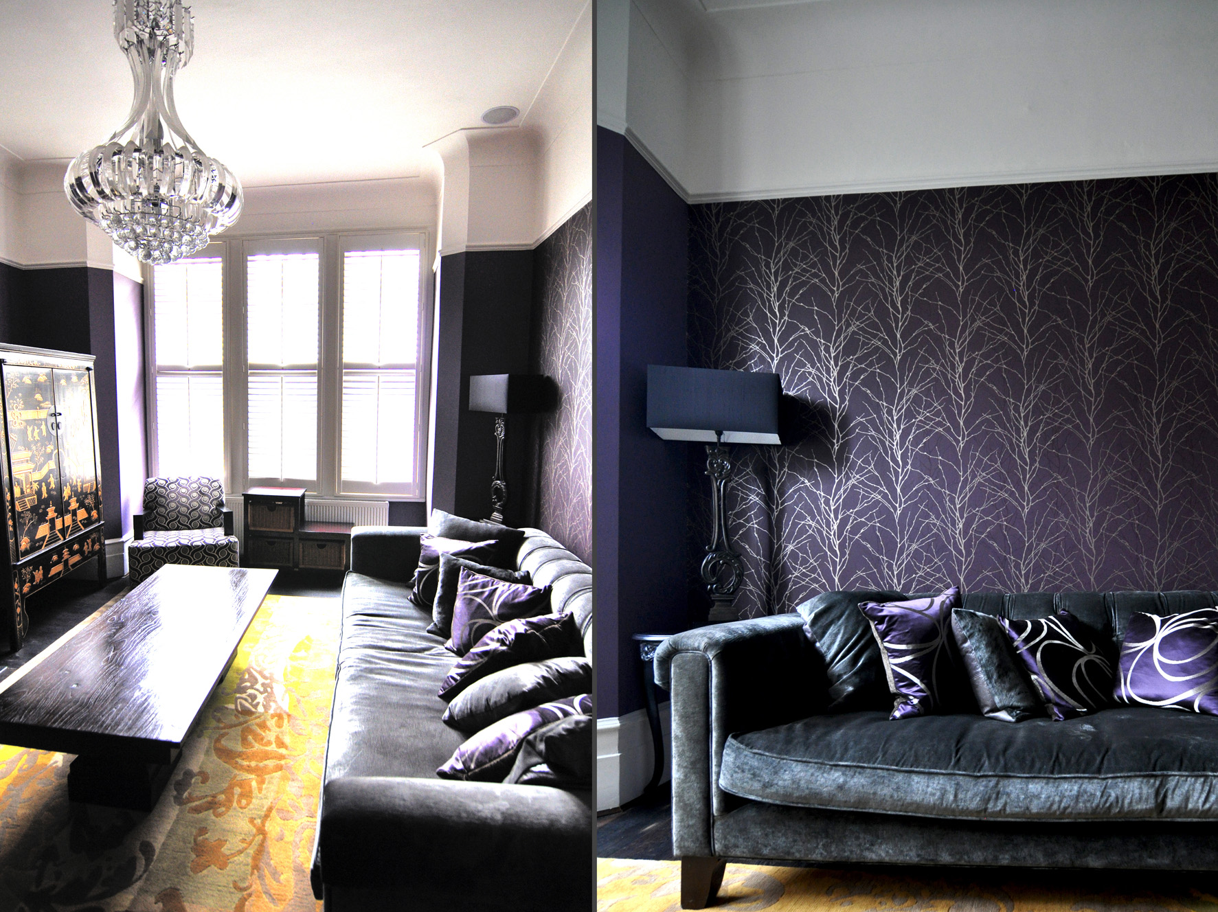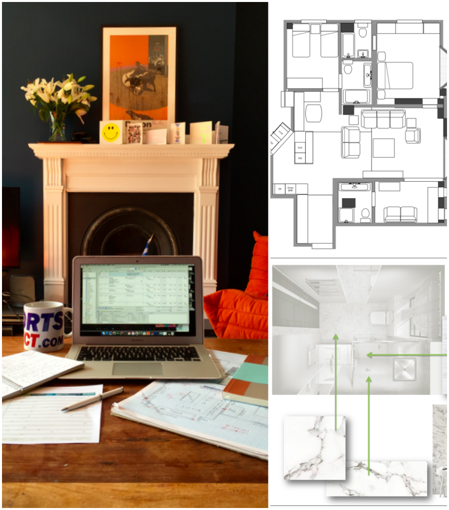 Inspired by the Dulux Paint of the Year presentation we attended, we decided to go with creative use of paint, rather than wallpaper, allowing us to zone off smaller areas more effectively, and making it an easily changeable, durable, budget friendly way to introduce lots of colour (which the clients aren’t scare of, but the flat was lacking).