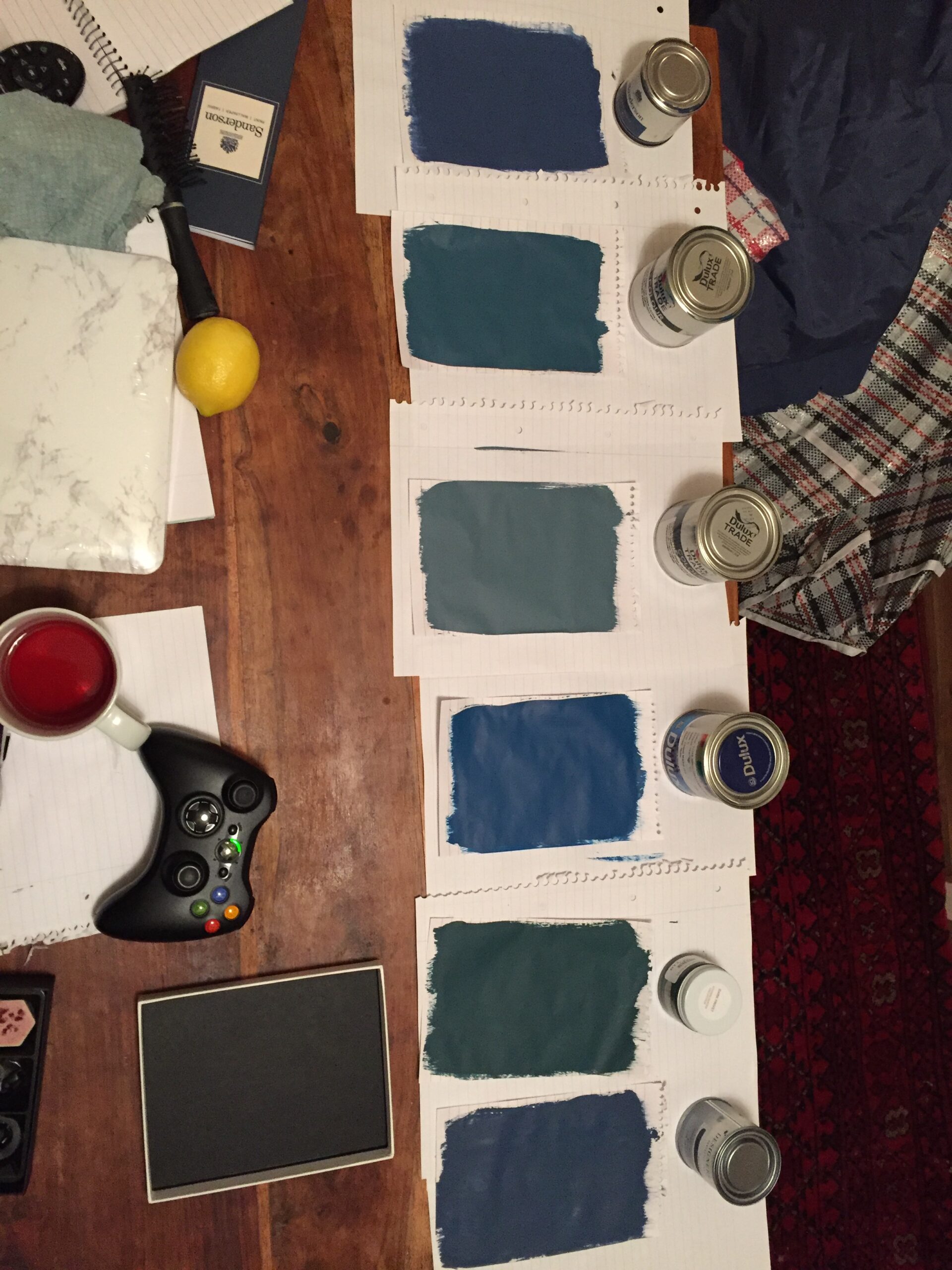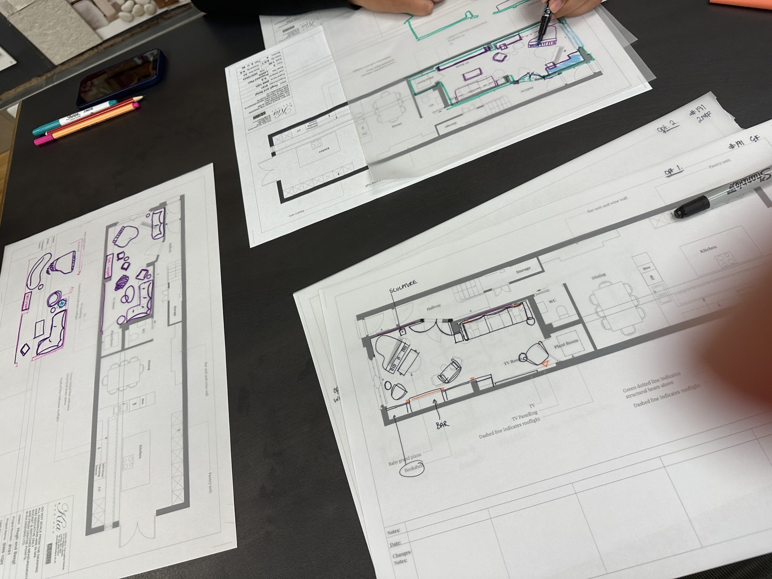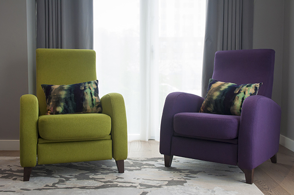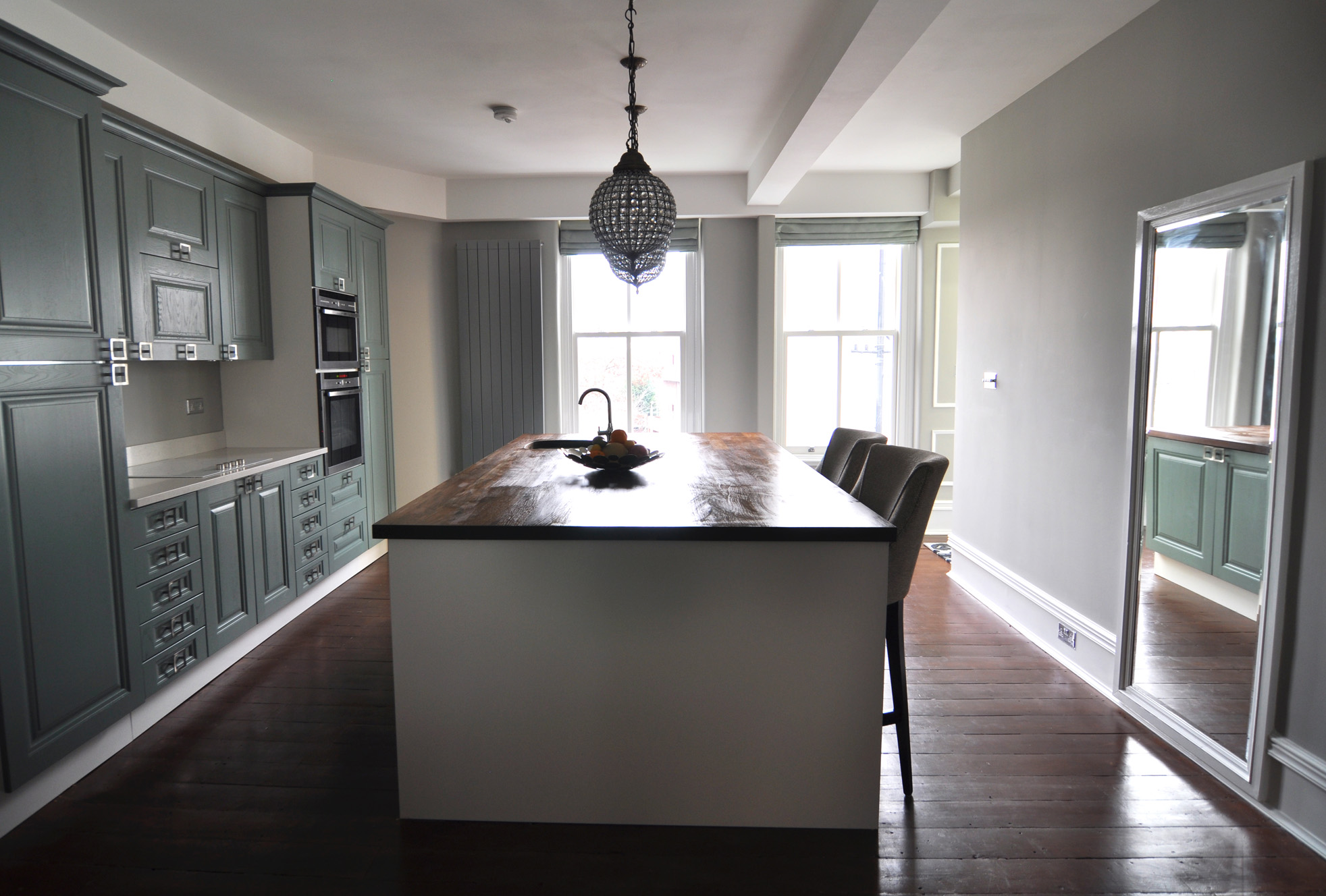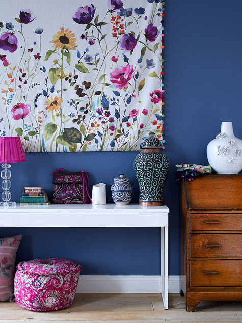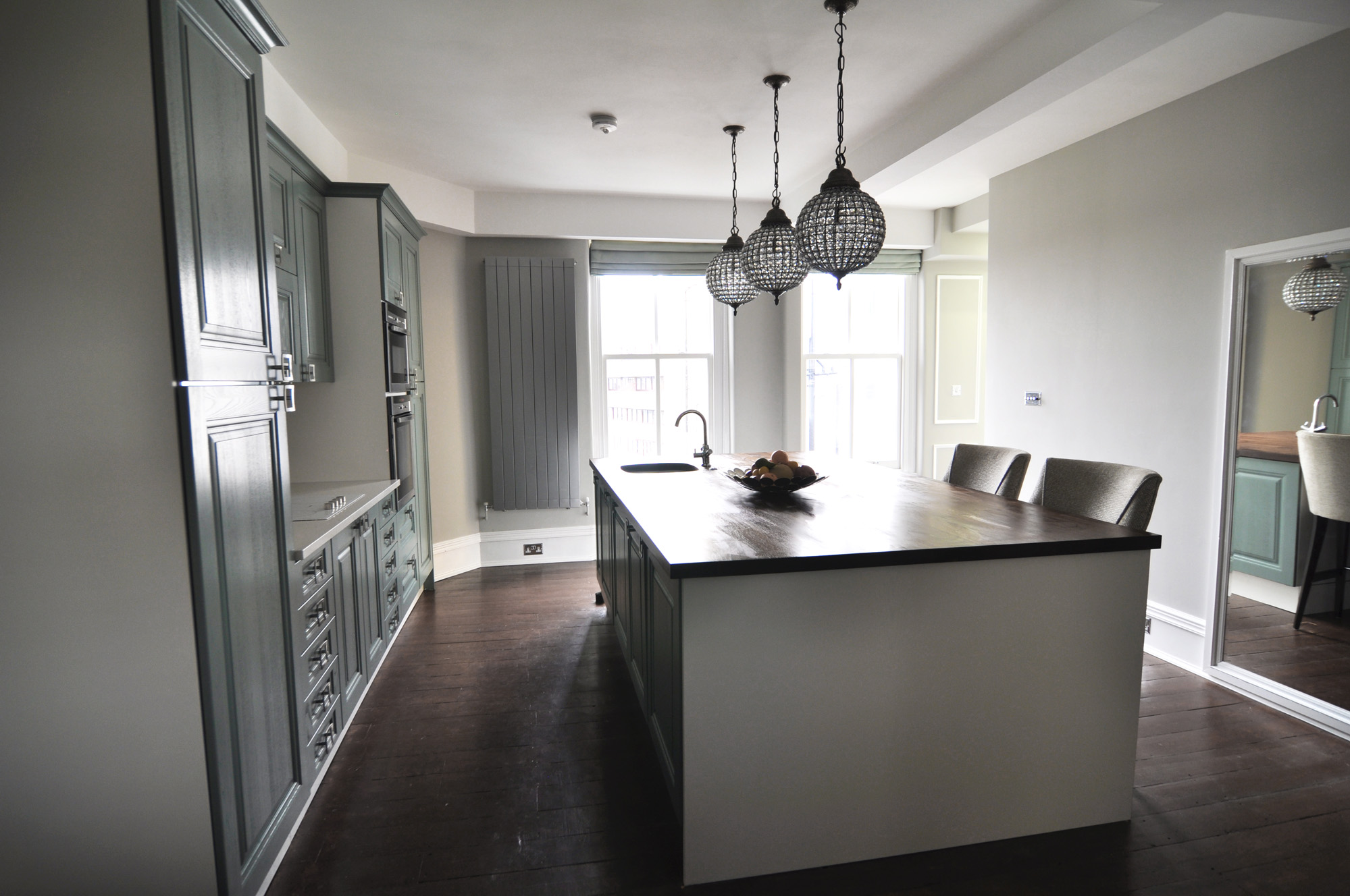 Inspired by the Dulux Paint of the Year presentation we attended, we decided to go with creative use of paint, rather than wallpaper, allowing us to zone off smaller areas more effectively, and making it an easily changeable, durable, budget friendly way to introduce lots of colour (which the clients aren’t scare of, but the flat was lacking).