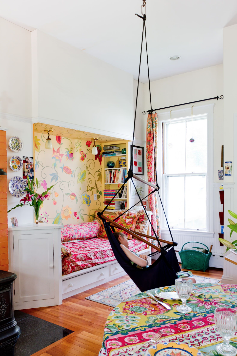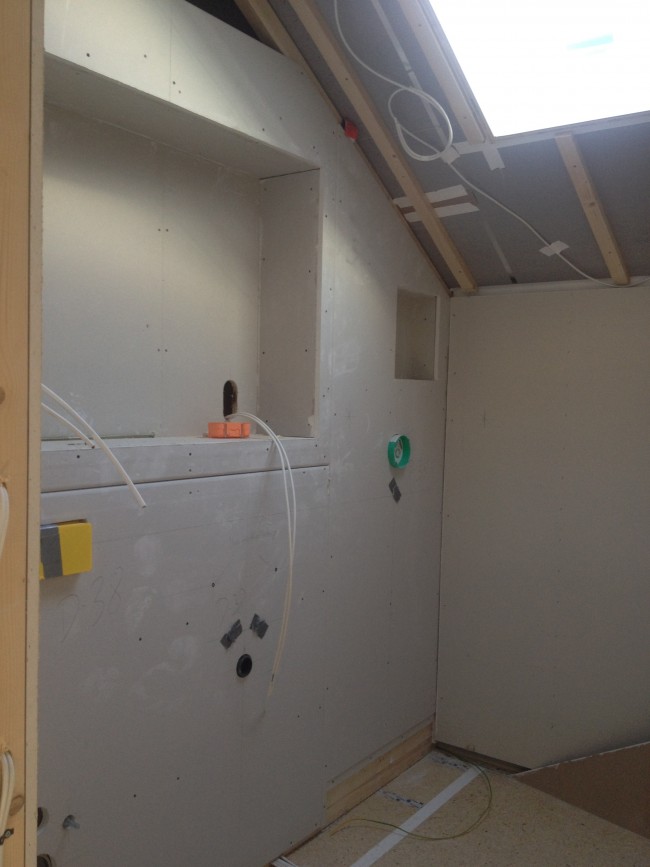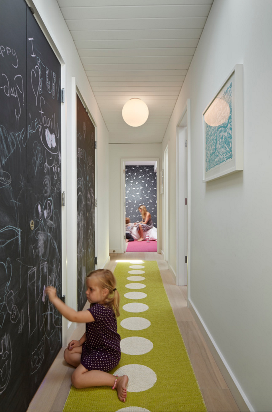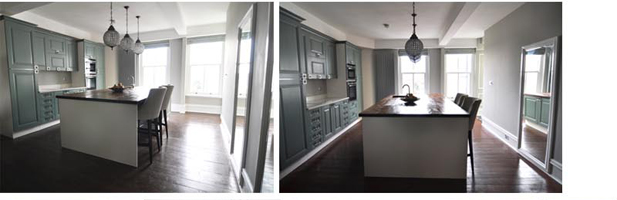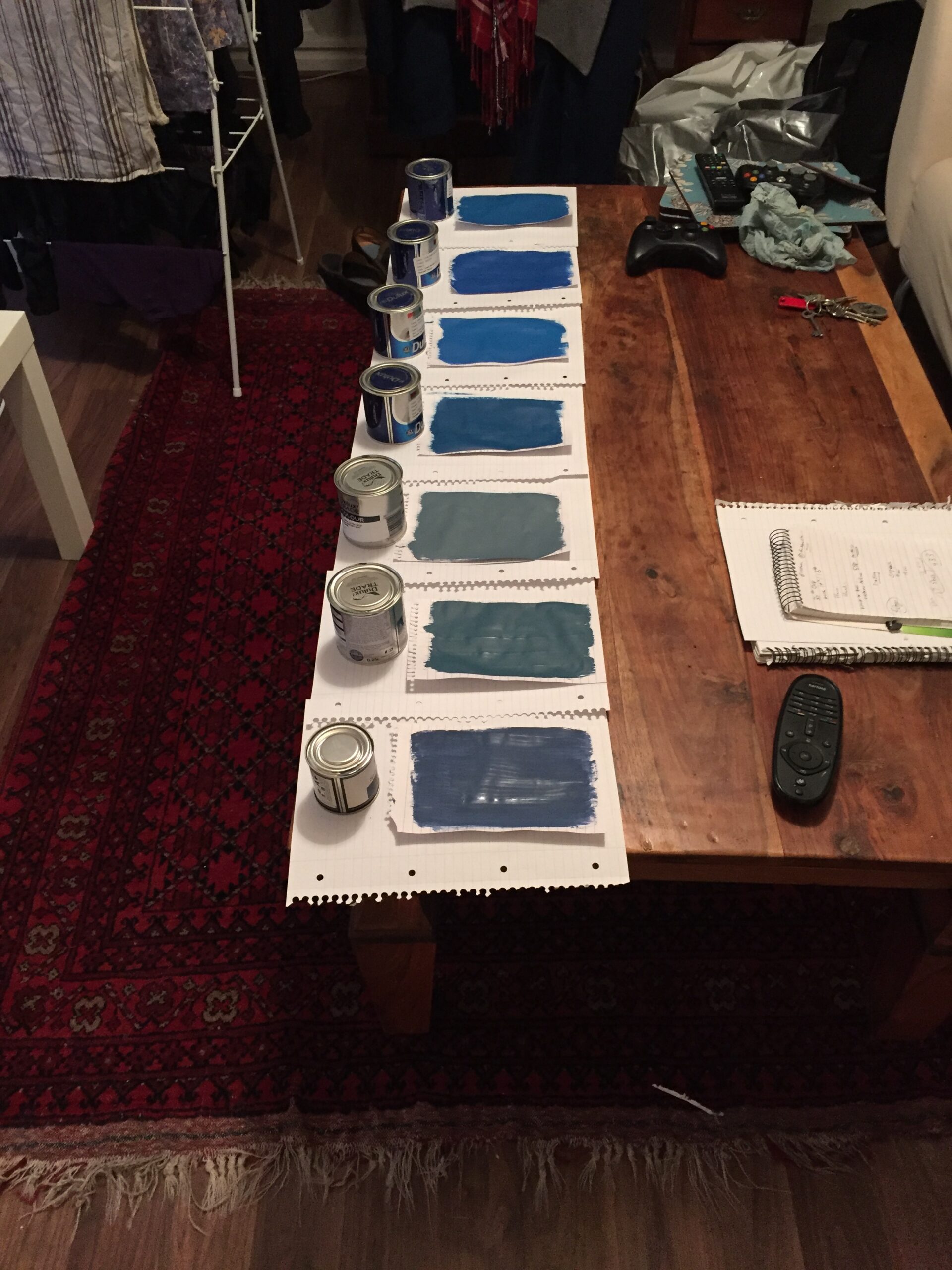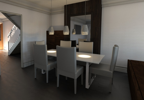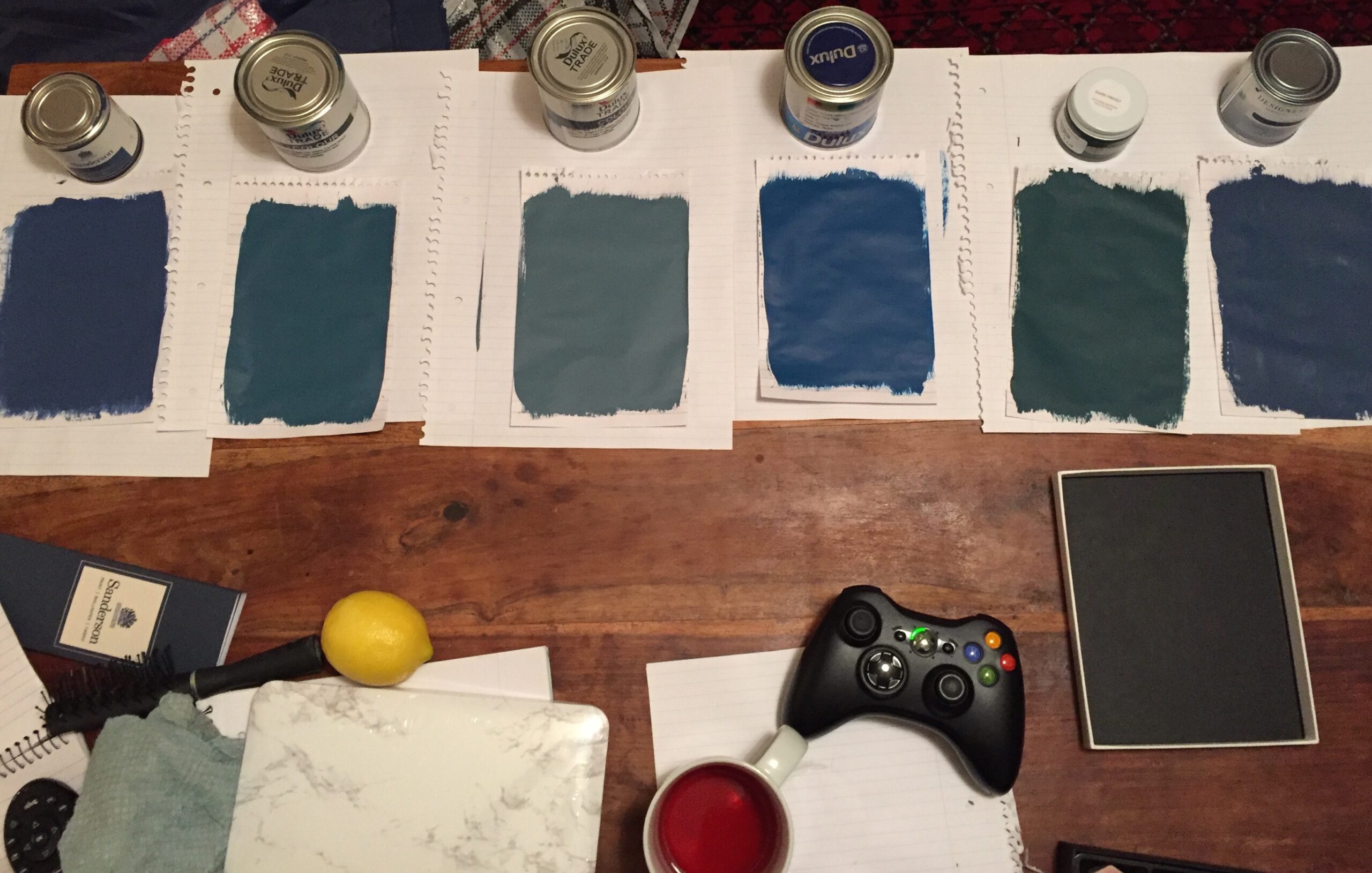 Inspired by the Dulux Paint of the Year presentation we attended, we decided to go with creative use of paint, rather than wallpaper, allowing us to zone off smaller areas more effectively, and making it an easily changeable, durable, budget friendly way to introduce lots of colour (which the clients aren’t scare of, but the flat was lacking).