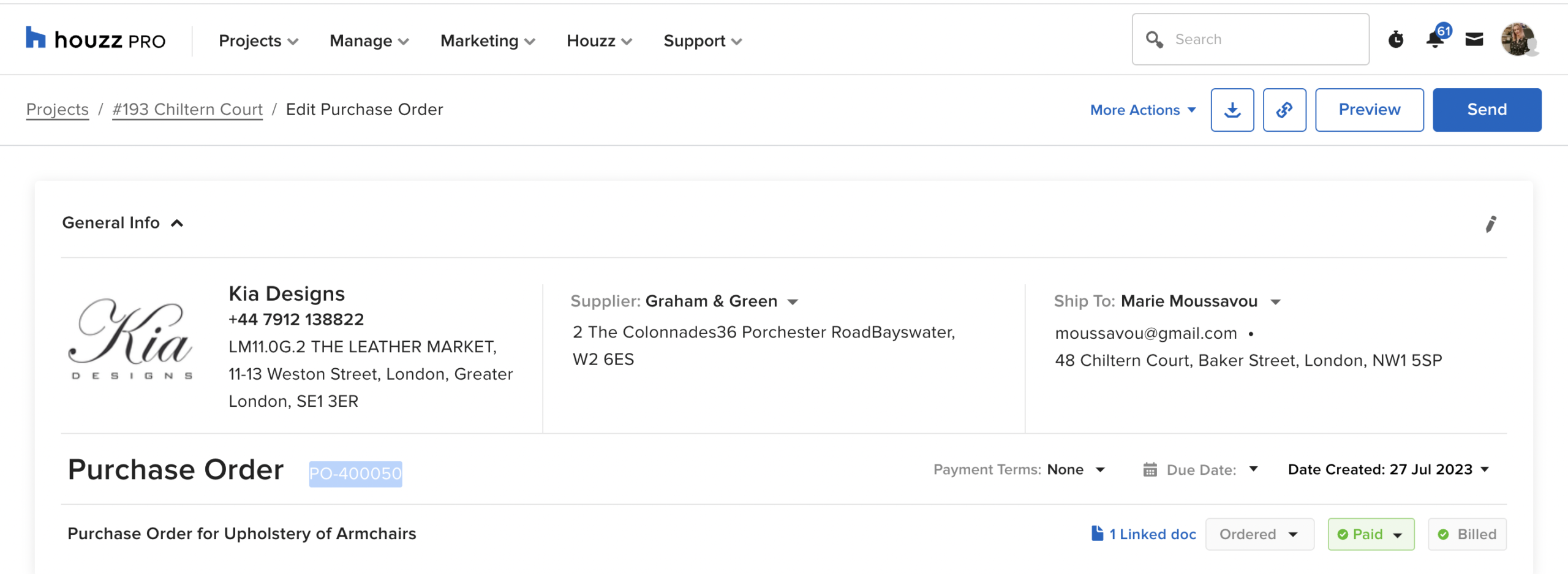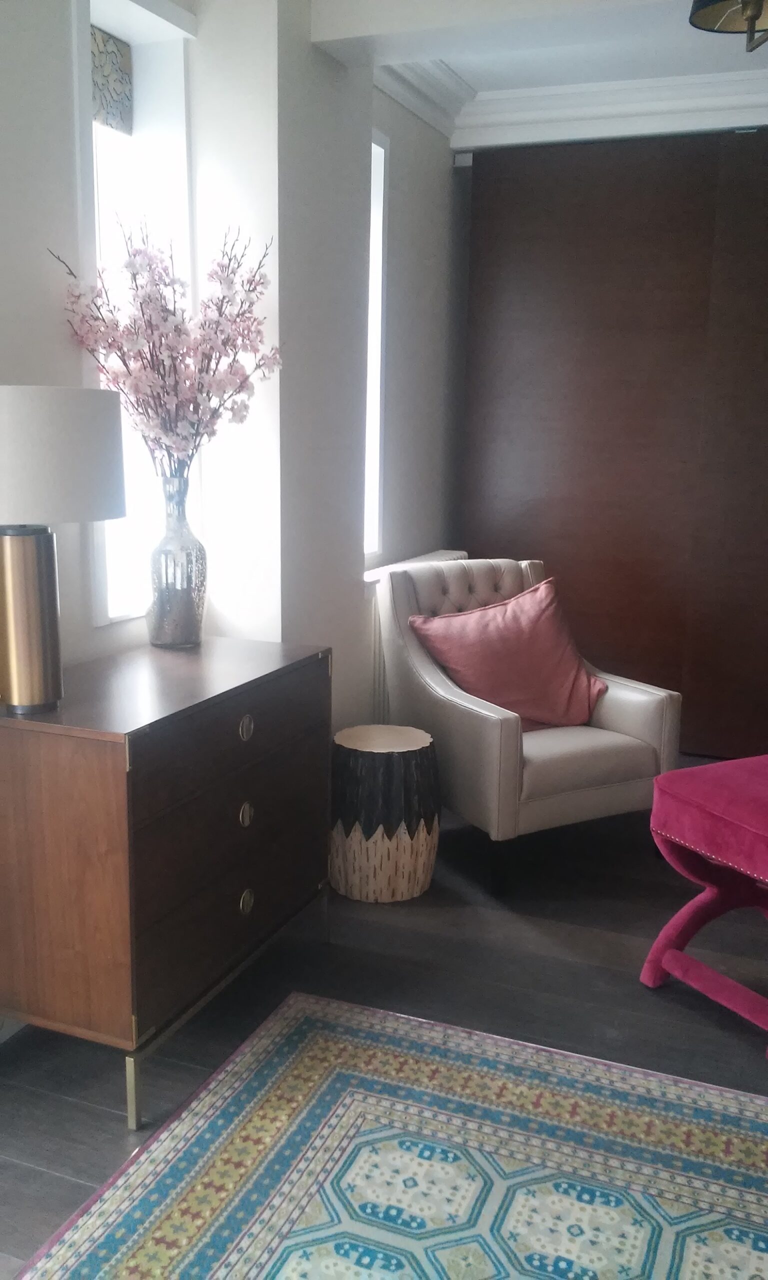 The clients liked it overall, but as their tastes were strictly modern, had a hard time imagining themselves owning several of the pieces. We hear ‘I would never have chosen that’ quite a lot (which is why you have hired us, no? If we only bought what you bought you could do it yourself). We toned down a few of the pieces and introduced some industrial flare to keep the design interesting but less ‘vintage’.