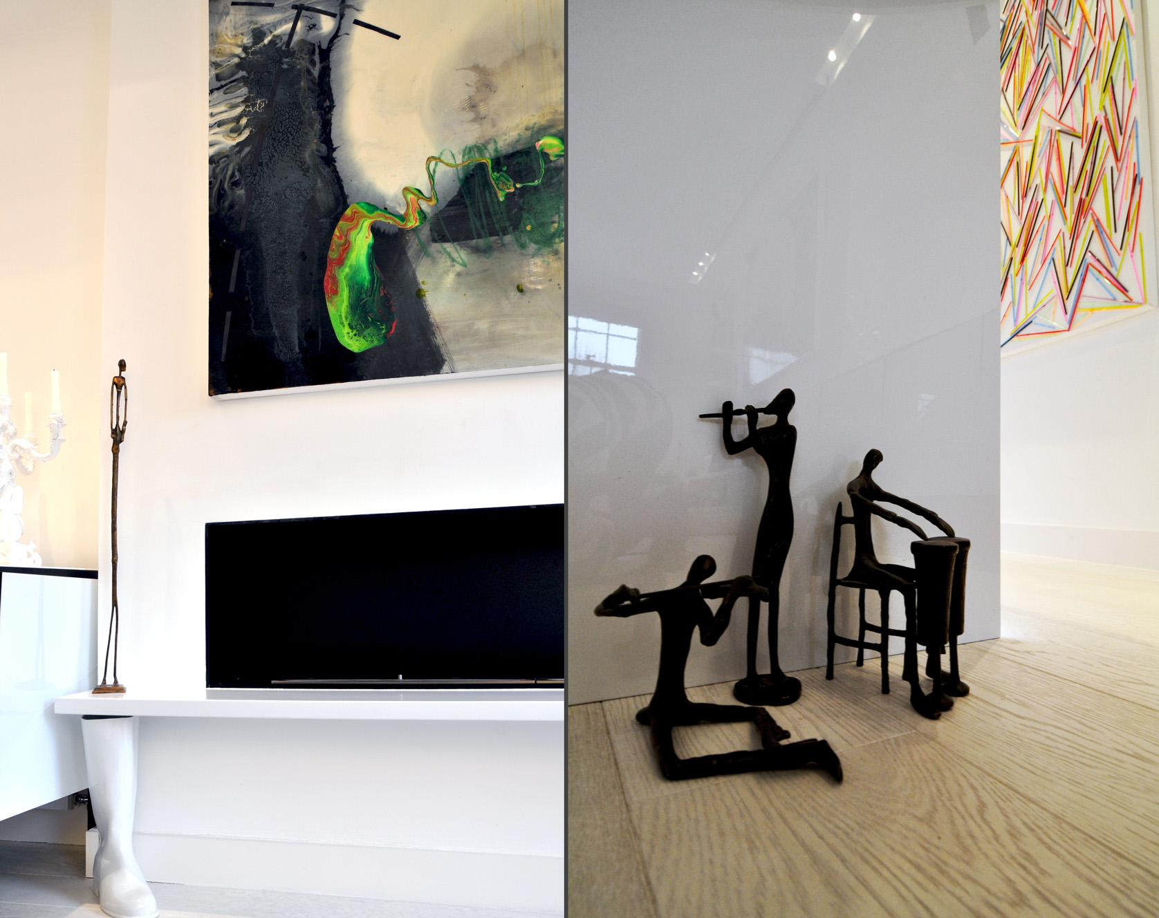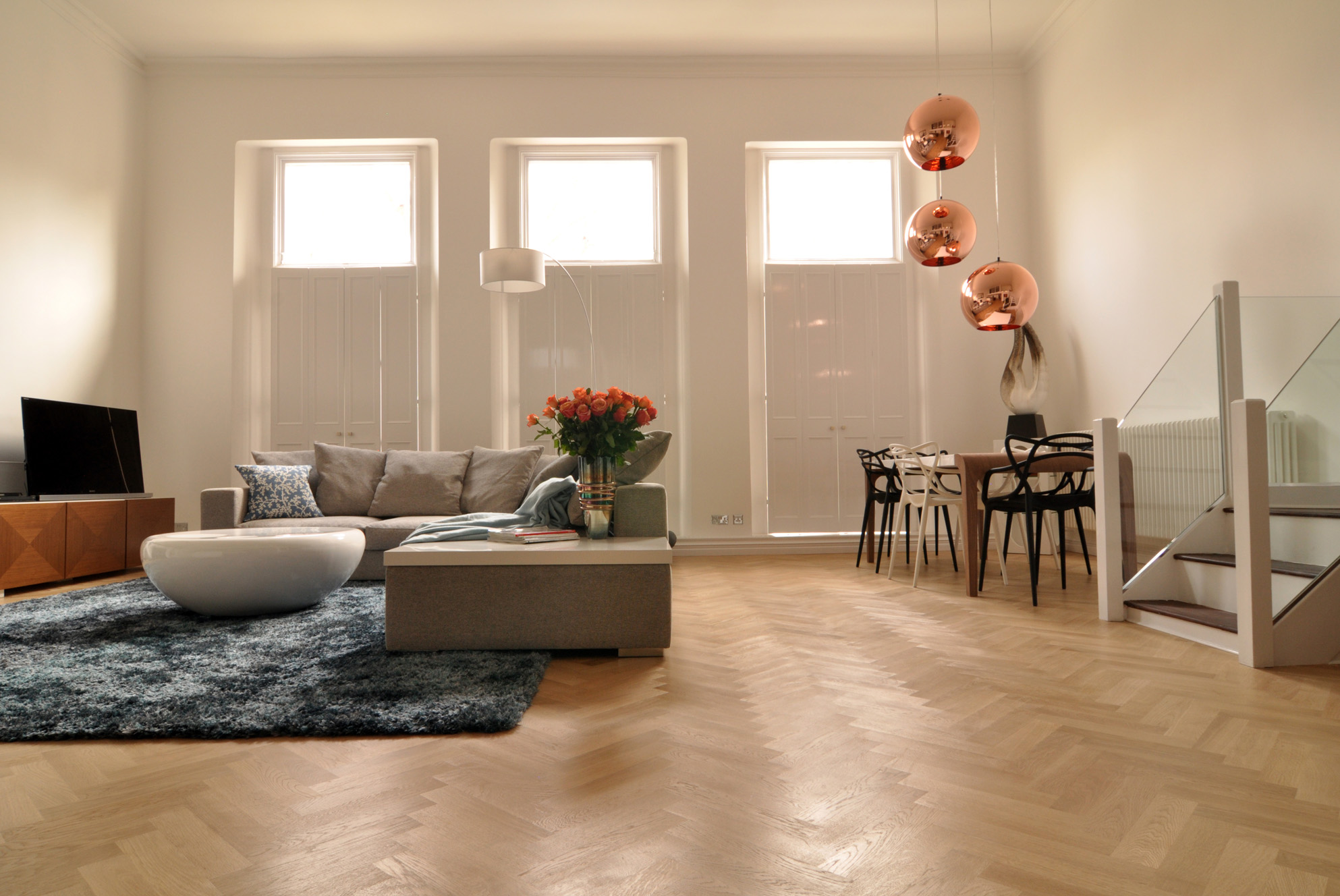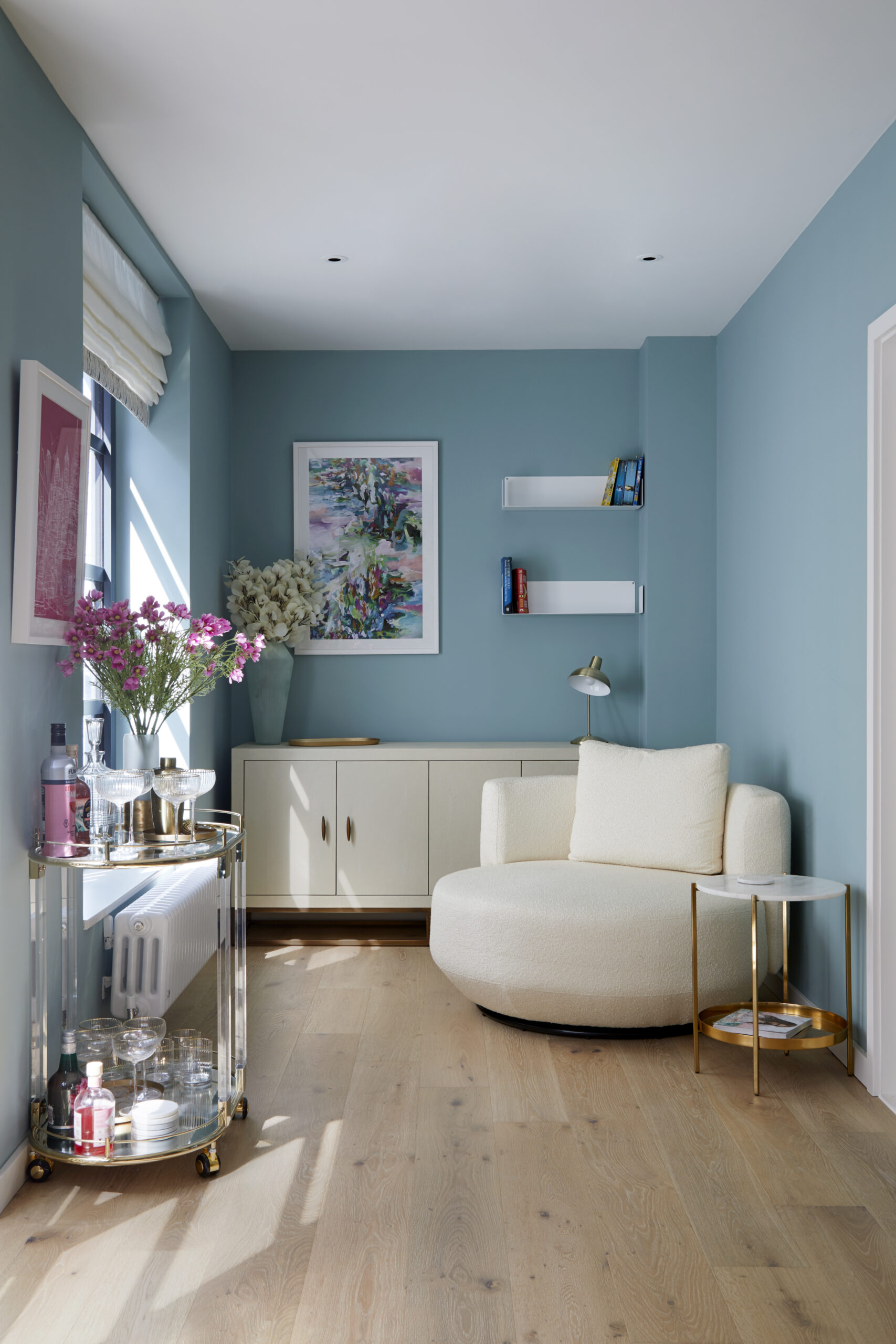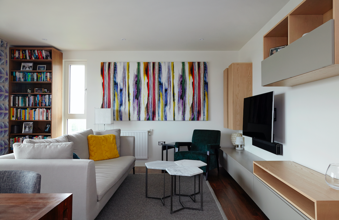 New build flats tend to lack character, so it’s important to gain a sense of it history and personality. We initially added art work related to their travels and contemporary pieces with a vintage feel in amongst the slicker, newer pieces they already owned to stop it looking like a show home.