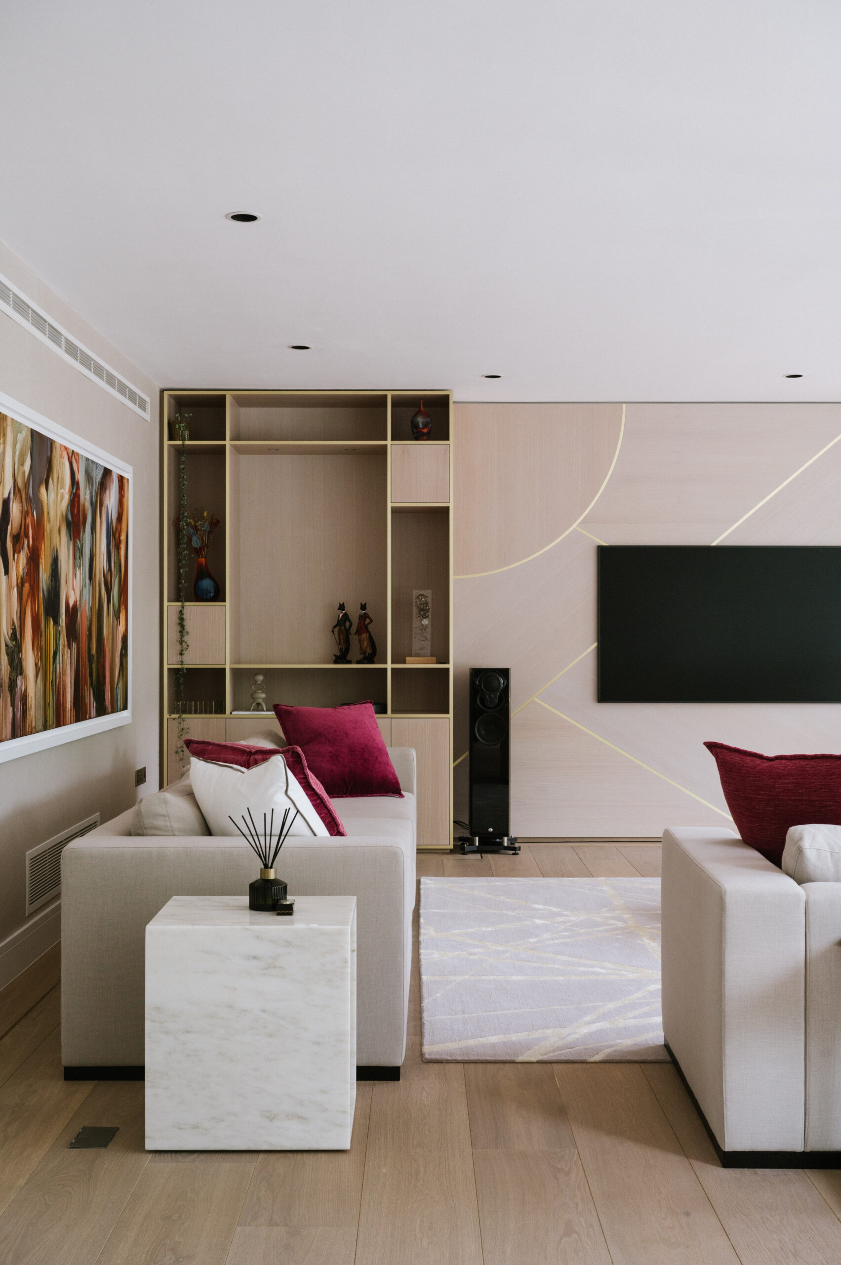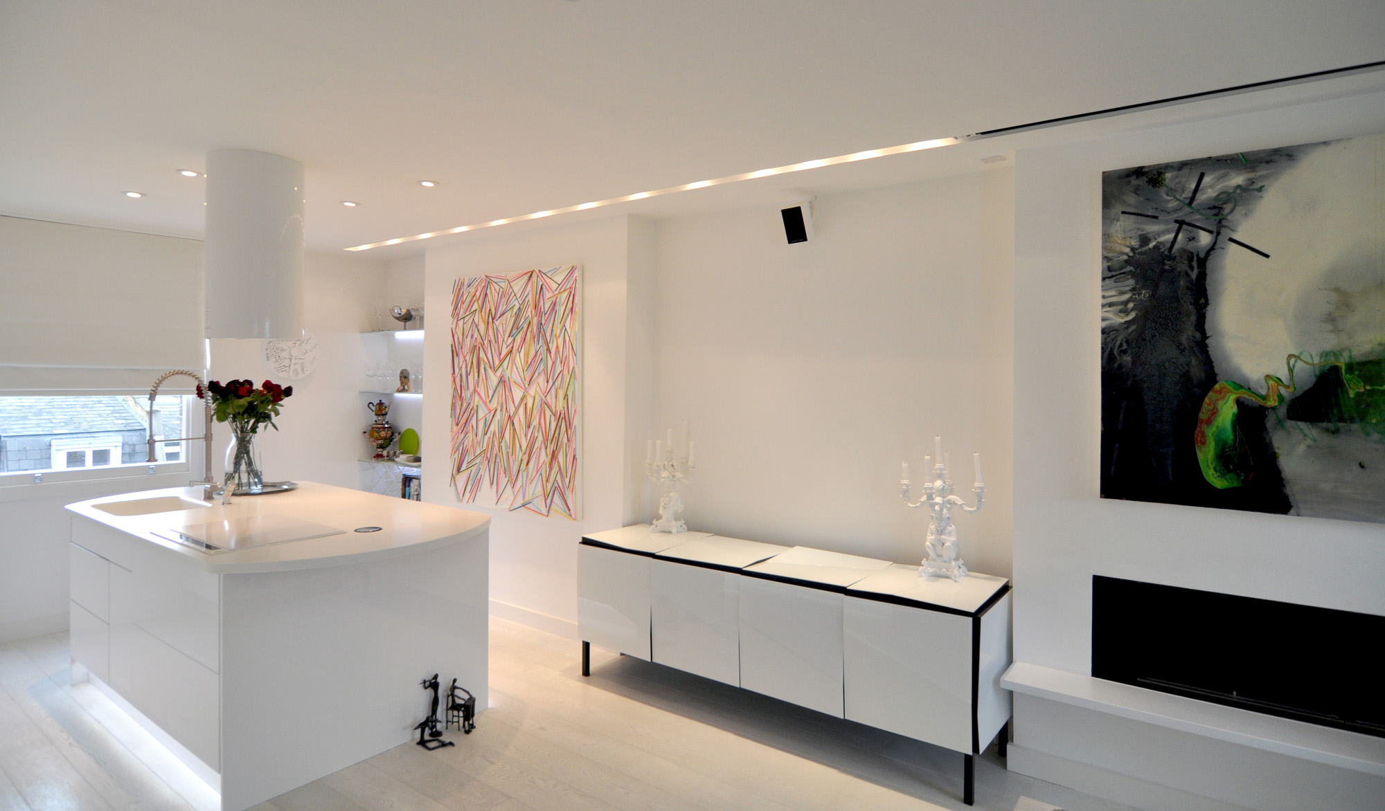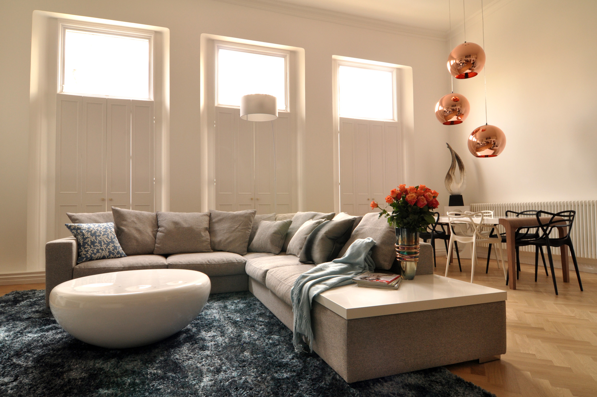 New build flats tend to lack character, so it’s important to gain a sense of it history and personality. We initially added art work related to their travels and contemporary pieces with a vintage feel in amongst the slicker, newer pieces they already owned to stop it looking like a show home.
