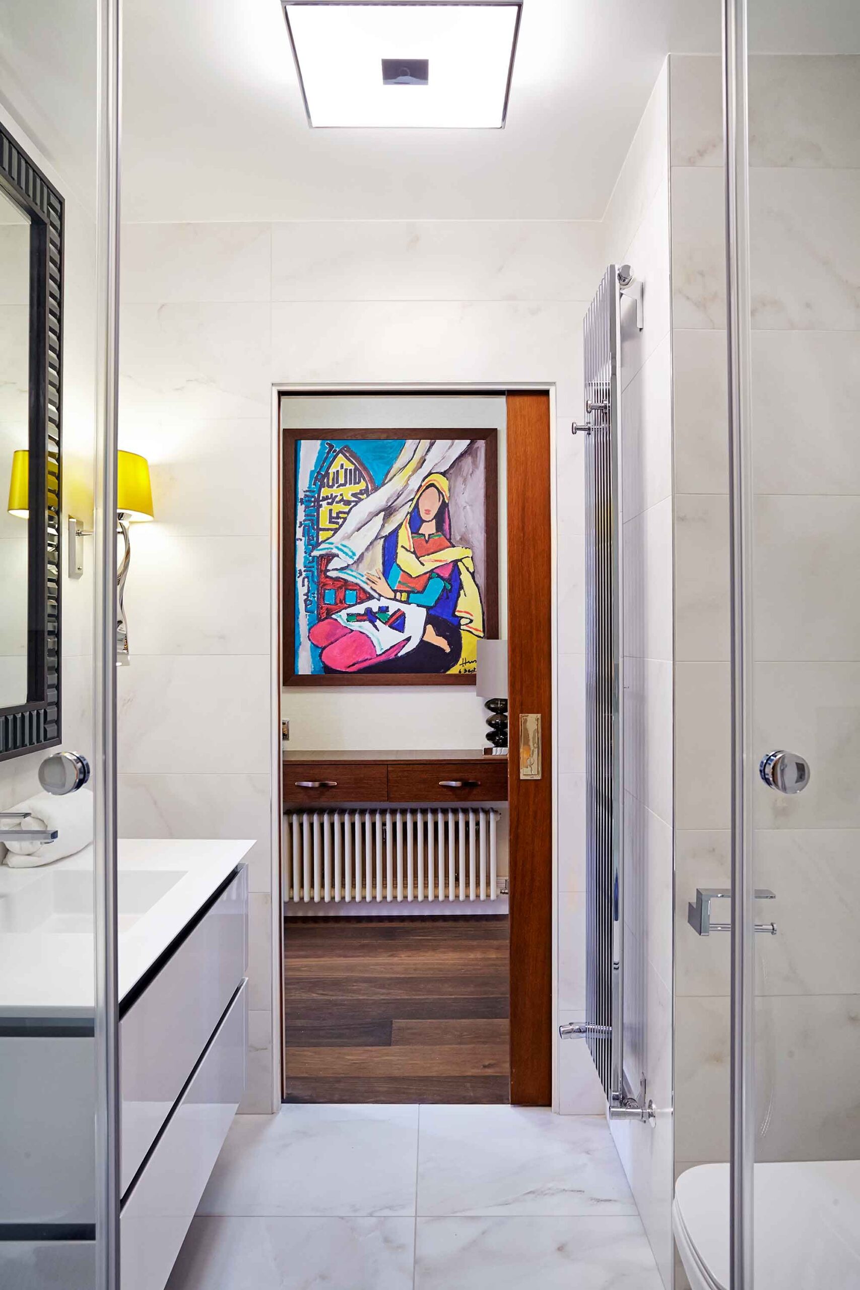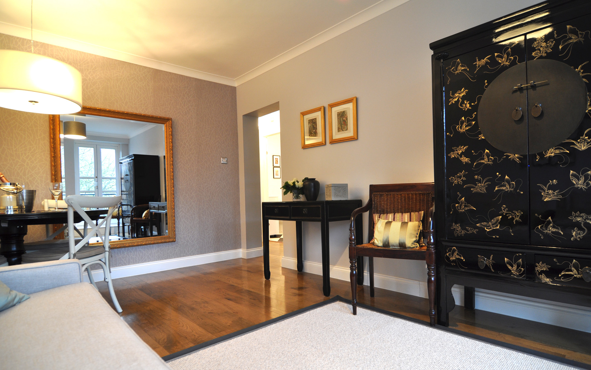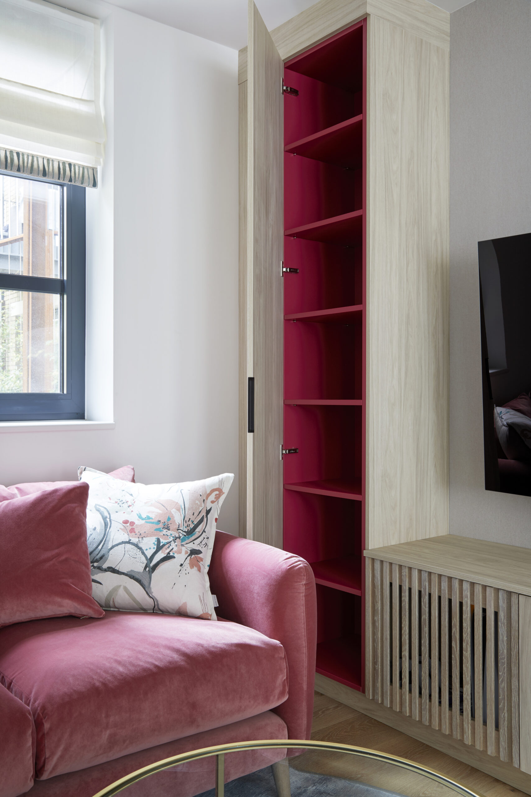 The brief was to make the flat feel more like home, make it an interesting space for guests and provide more storage (that old chestnut). Their flat had an overly generous hallway which was a terrible waste of space. Rather than placing a large bank of wardrobes along it, which would have more than solved any storage issues but been an eyesore, we decided to make it a welcoming entranceway with selected storage for key pieces.