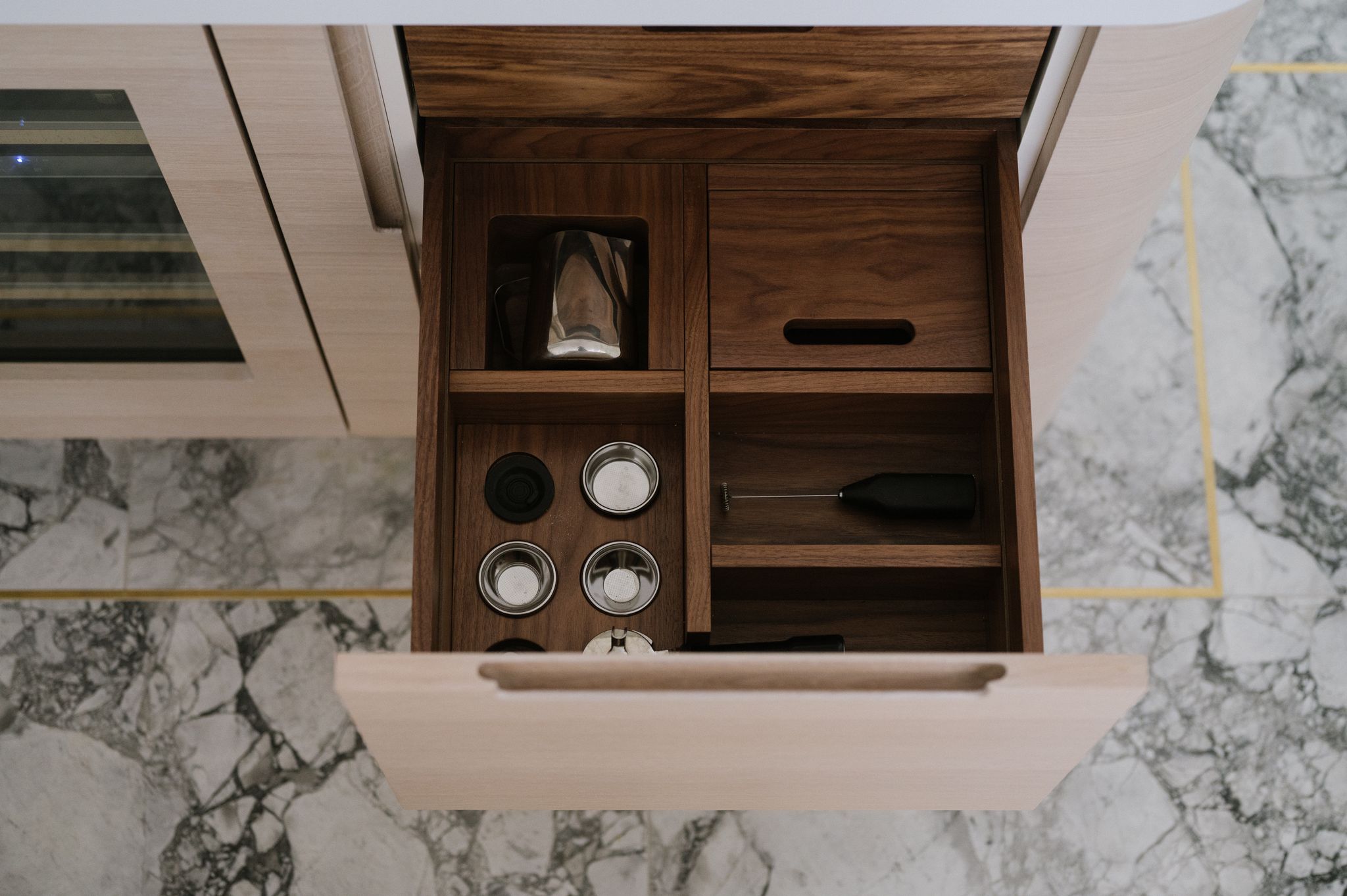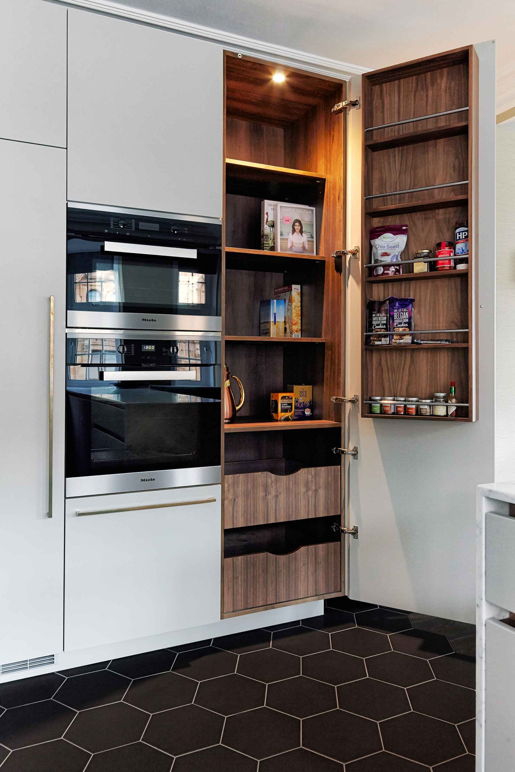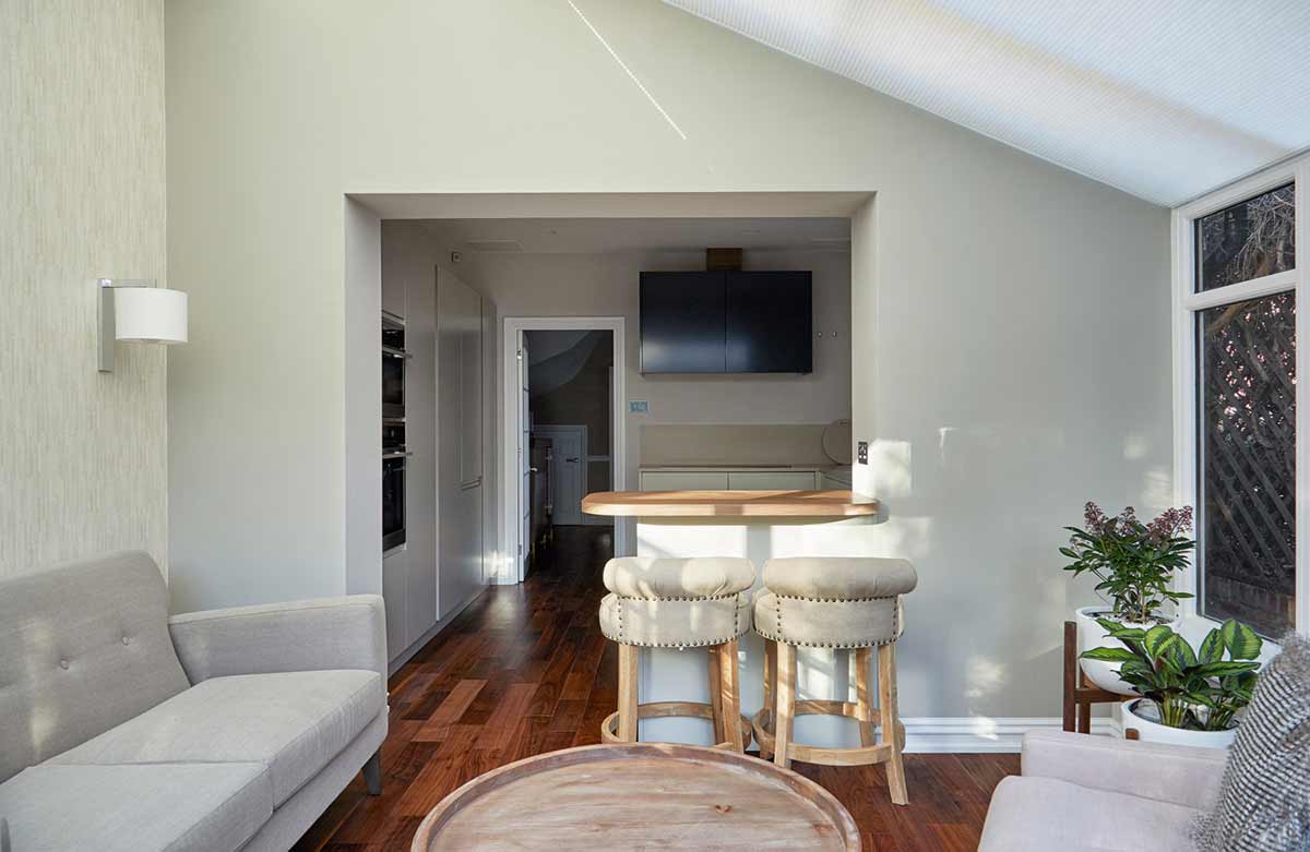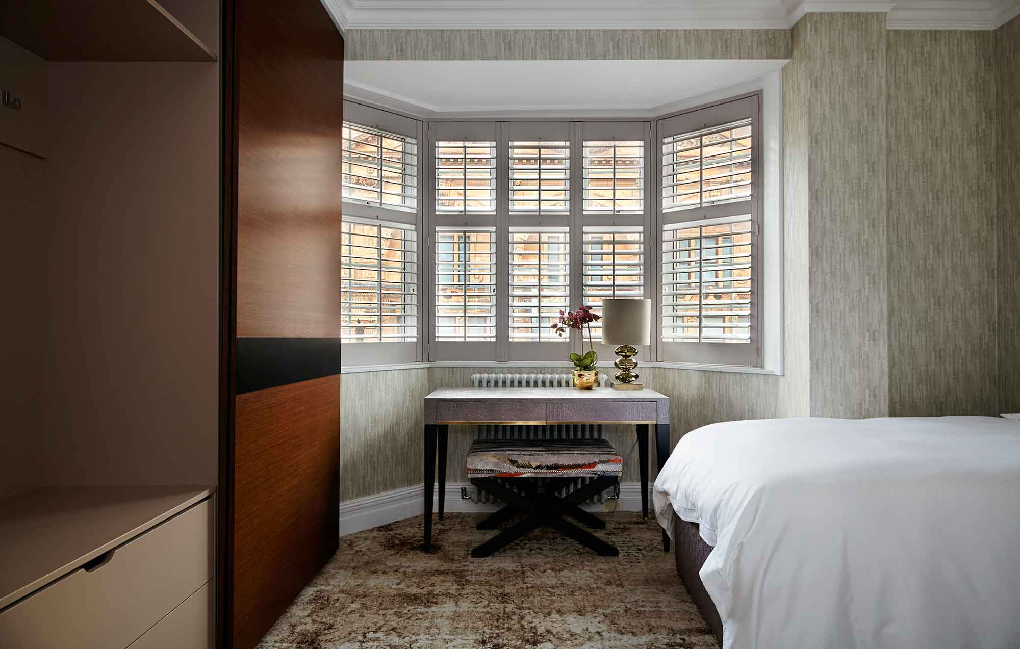 The brief was to make the flat feel more like home, make it an interesting space for guests and provide more storage (that old chestnut). Their flat had an overly generous hallway which was a terrible waste of space. Rather than placing a large bank of wardrobes along it, which would have more than solved any storage issues but been an eyesore, we decided to make it a welcoming entranceway with selected storage for key pieces.