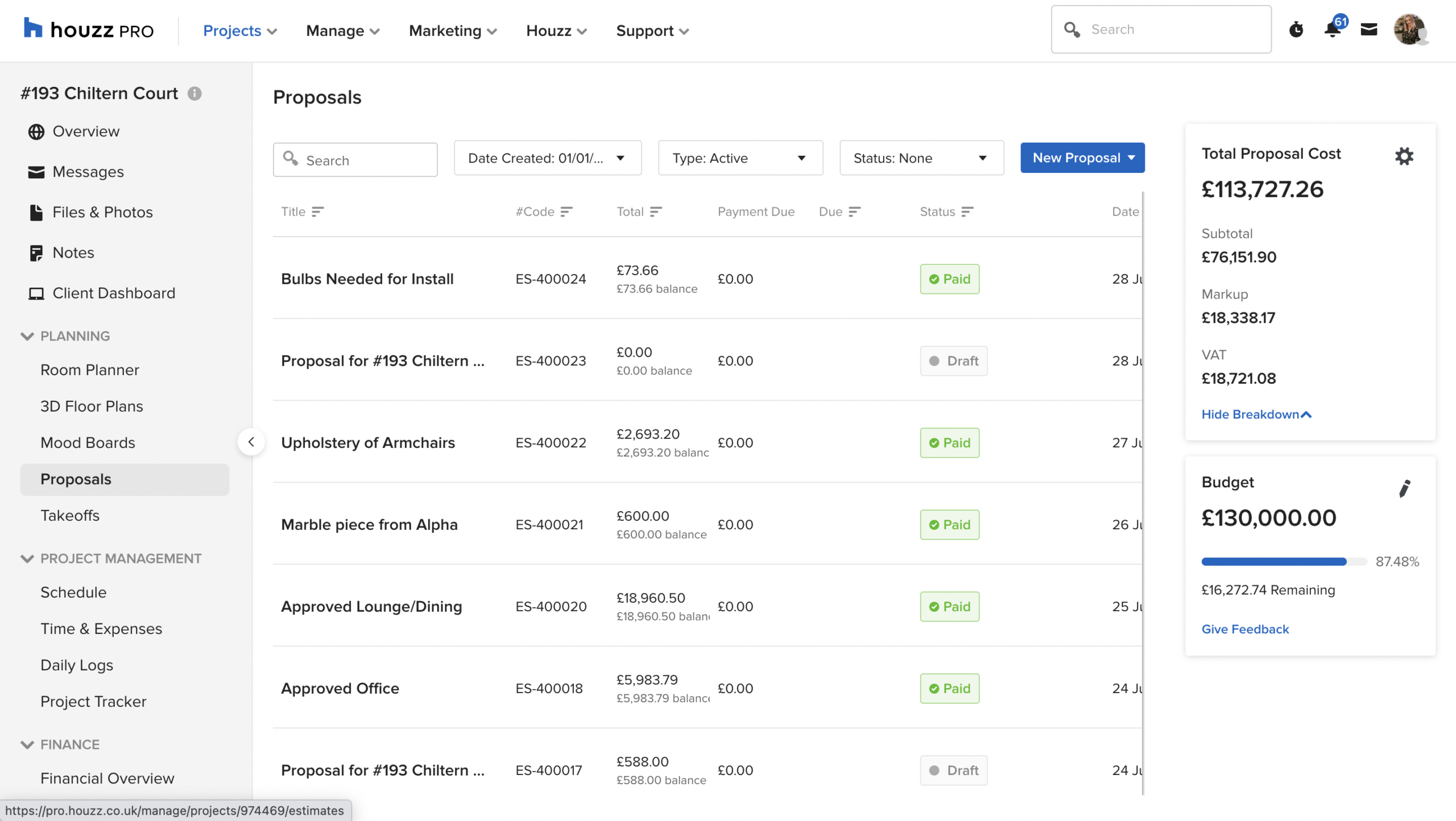 Recent clients of ours, owners of a 2 bedroom new build flat in Wimbledon, sent us the following images as inspiration and a guide to their style and product choices: