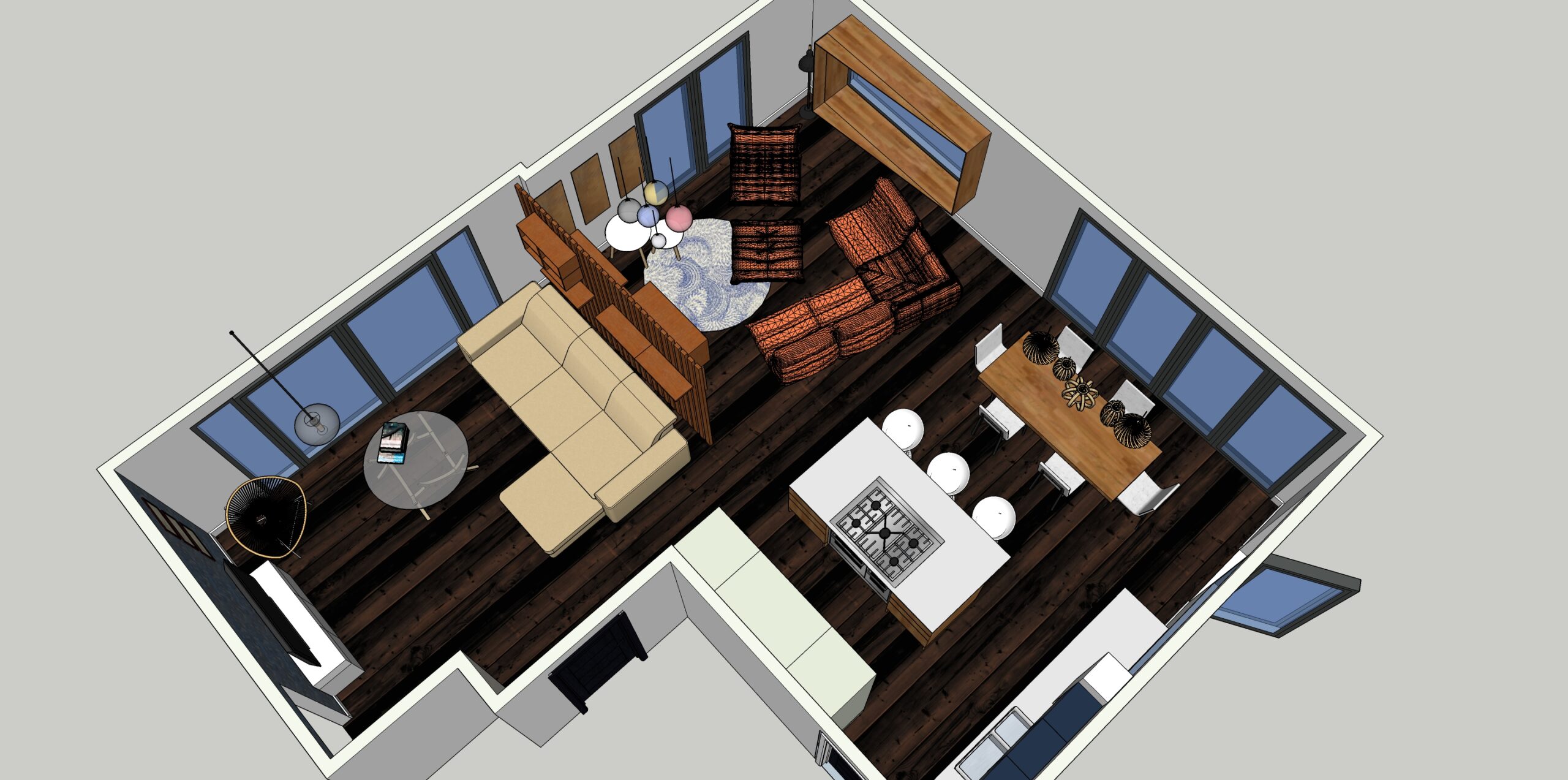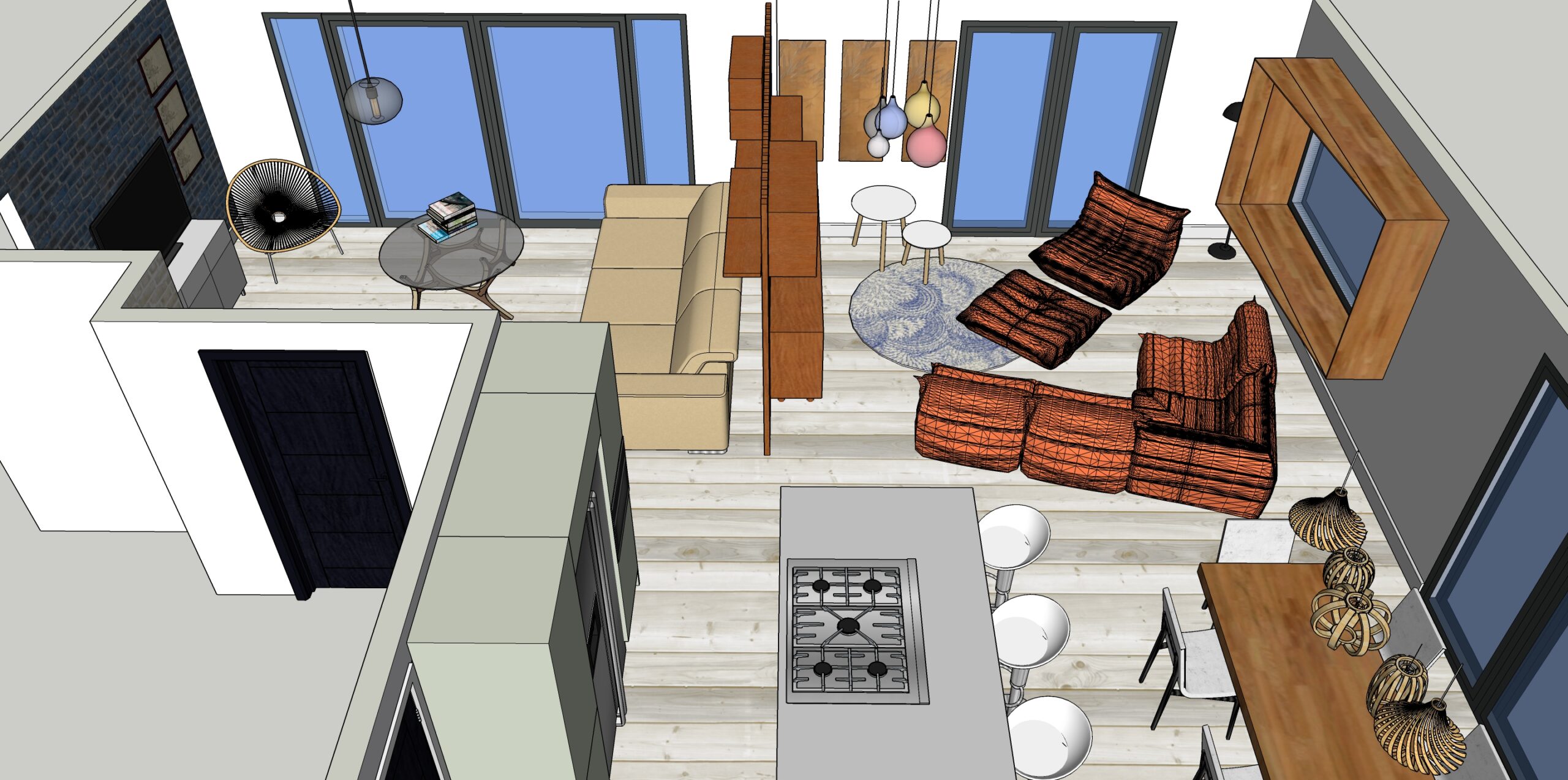 One of the sticking points when looking at a Scandi-Japanese palette was to decide whether to go with a lighter or darker floor. Thankfully these 3D sketches made the decision an easy one for the client and she was instantly drawn to the lighter colour oak flooring.